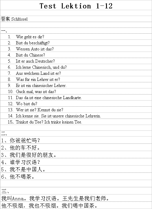 · Die Lösung zum Test nach Lektion 12